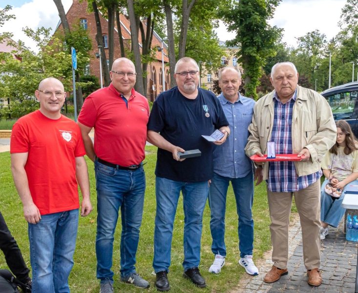Jej z ważniejszych elementów w oficjalnej części spartakiady było przyznanie odznaczeń i medali zasłużonym krwiodawcom. W tym roku wyróżniono tylko jedną osobę - Roberta Arbatowskiego, to nasz redakcyjny kolega, emerytowany żołnierz.