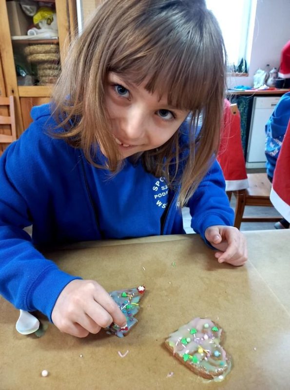 Dzięki wizycie w pracowni ceramiki artystycznej „Zielononoga” udało się spełnić życzenie najmłodszych uczniów szkoły. Dzieci uczestniczyły w interesujących warsztatach, podczas których udekorowały świąteczne pierniczki według własnego pomysłu. Ogromny wybór elementów dekoracyjnych i swoboda w działaniu sprawiły, że powstały niepowtarzalne i wyjątkowe dzieła sztuki - gotowe do schrupania!