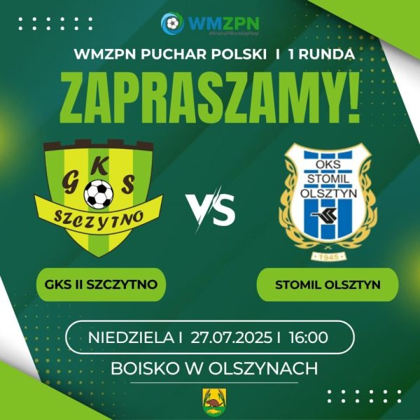 To będzie futbolowe święto w gminie Szczytno. W niedzielę o godz. 16 na boisku w Olszynach rezerwy GKS Szczytno zmierzą się ze Stomilem Olsztyn – jednym z najbardziej rozpoznawalnych klubów Warmii i Mazur. Spotkanie odbędzie się w ramach 1. rundy Wojewódzkiego Pucharu Polski.