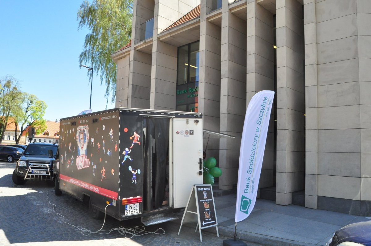 Bank Spółdzielczy w Szczytnie karmi klientów. Przy budynku BS, przy Placu Juranda, stanął foodtruck. Już od godziny 12.00, do godziny 16.00, oferuje smakowite burgery, całkowicie ZA DARMO klientom Banku. Wystarczy się "wylegitymować" – kartą klienta, płatniczą czy kredytową - Mastercard.