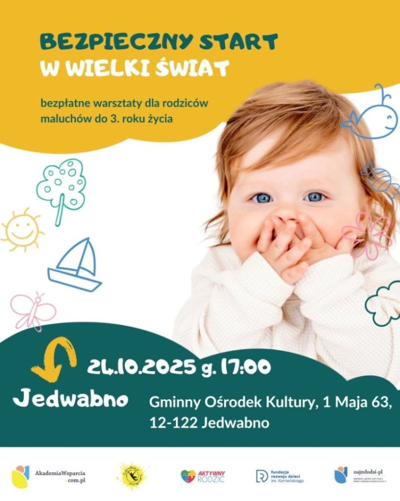 W piątek, 24 października o godz. 17:00, w Gminnym Ośrodku Kultury w Jedwabnie odbędą się bezpłatne warsztaty dla rodziców dzieci do 3. roku życia. Spotkanie poprowadzi Katarzyna Trzcińska, nauczyciel wychowania przedszkolnego z Jedwabna.