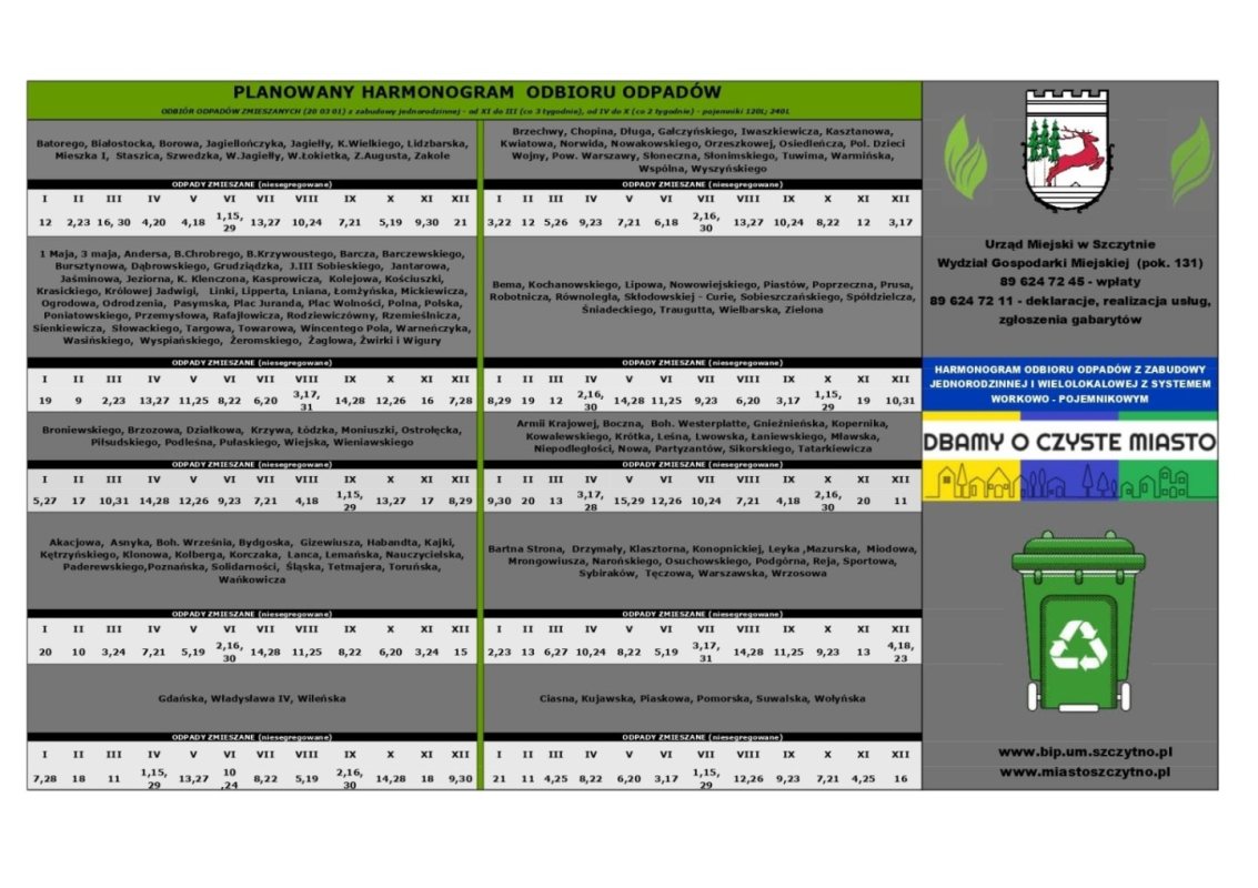 Miasto Szczytno opublikowało harmonogram odbioru odpadów komunalnych na nowy rok. Warto się z nim zapoznać, bo od stycznia za wywóz śmieci odpowiadać będzie miejska spółka.