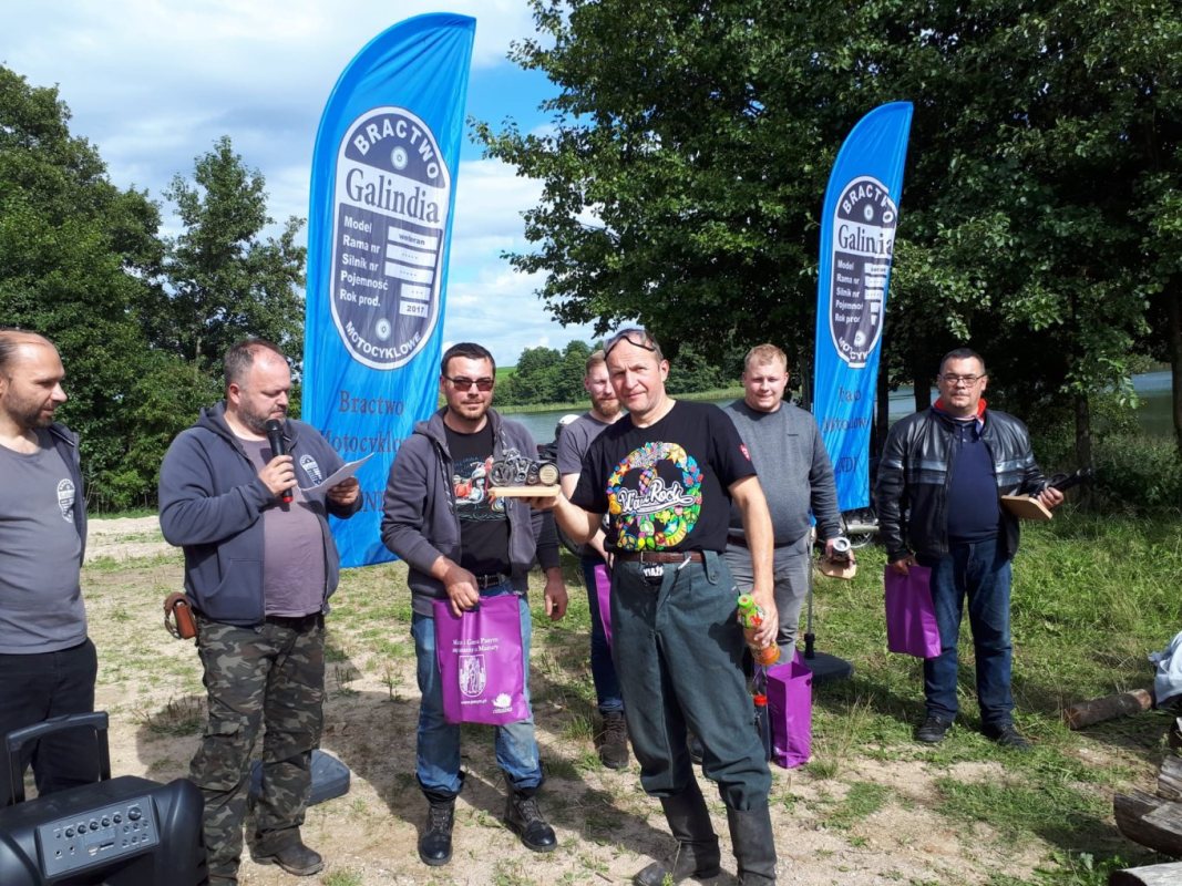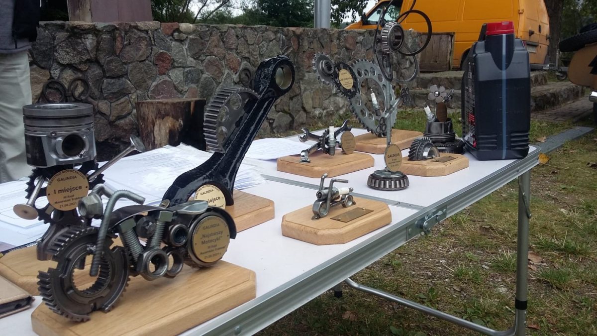 Na mecie, na poddźwierzuckiej plaży, czekały ciepłe napoje, posiłek i... oczekiwanie na wyniki. Te, dla uczestników szczycieńskich rajdów, są bardzo ważne ze względu na... „puchary”. Warto bowiem podkreślić, że korzystając z własnego talentu i wsparcia właściciela firmy Agro-Części Kazimierza Wróblewskiego, nagrody przygotowuje Przemek Halamus, zastępca prezesa bractwa Galindia. Są to „puchary” bardzo nietypowe, absolutnie oryginalne i unikalne, co zresztą widać na zdjęciu.