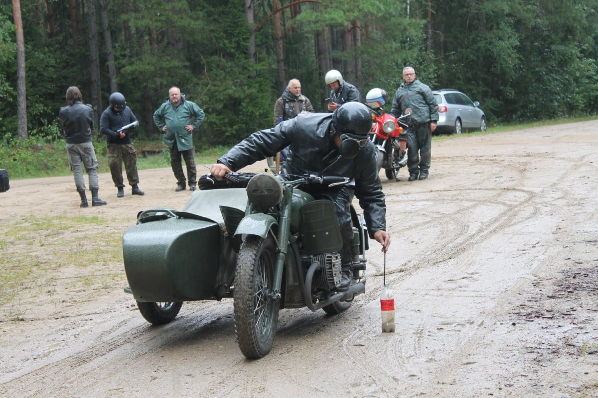 Tu musieli wykazać się umiejętnościami wręcz akrobatycznymi. Nie było bowiem łatwo, jadąc po szutrowej drodze, umieścić słomki w ustawionych na tej drodze butelkach. Po teście sprawnościowym kolejny postój i zadania czekały w Jeleniowie, przy kamieniu upamiętniającym poległych w I wojnie światowej. Stąd już tylko kilka kilometrów dzieliło motocykjlistów od ostatniego punktu kontrolnego – w centrum Dźwierzut, gdzie byli przepytani z historii polskich motocykli.