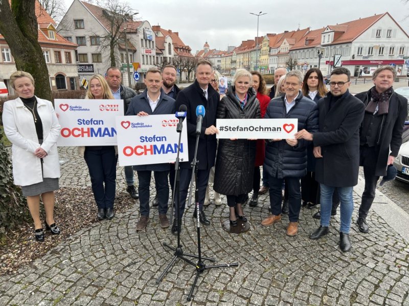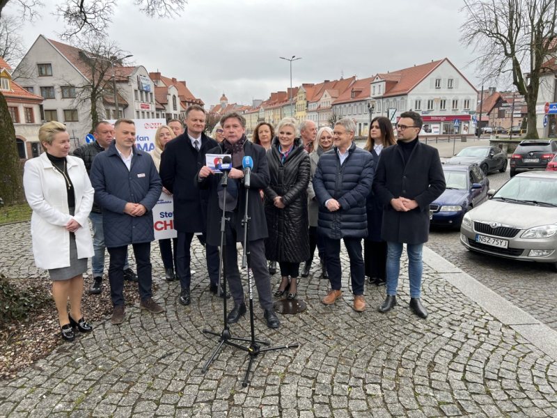 Konferencja odbyła się dziś na placu Juranda. KO zaprezentowała też swojego kandydata na burmistrza Szczytna - Stefana Ochmana.