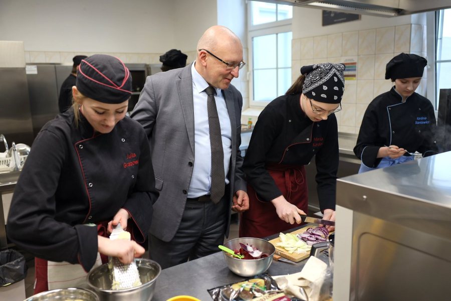 W same walentynki odbył się i rozstrzygnął szkolny etap XXV wojewódzkiego konkursu kulinarnego o nazwie: „Mistrz szkolnej patelni”. W tym roku wyłonił nie mistrza, lecz dwie mistrzynie, czyli drużynę w składzie Iga Boniecka i Nadia Dominiak, uczennice Technikum Żywienia i Usług Gastronomicznych.
