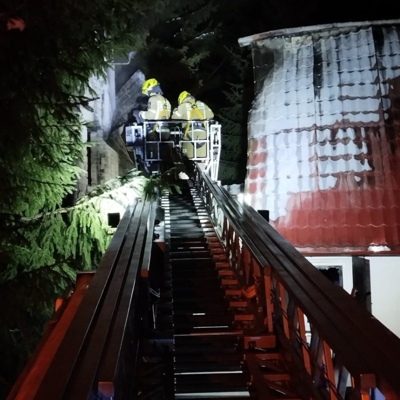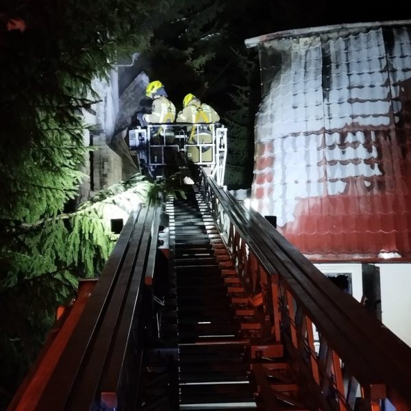 Strażacy zabezpieczyli miejsce, odcięli prąd i rozpoczęli działania gaśnicze, do których wykorzystano nawet podnośnik hydrauliczny.