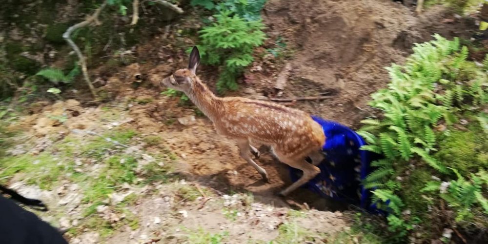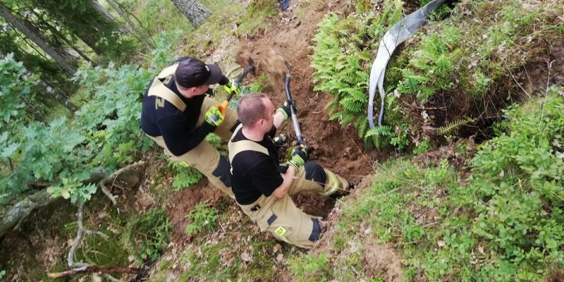 O pomoc w uwolnieniu sarny poprosił strażaków z OSP Jedwabno. Ci najpierw wykonali podkop do bunkra, a potem przy użyciu strażackich węży wydostali sarenkę, która po oswobodzeniu czmychnęła do lasu.