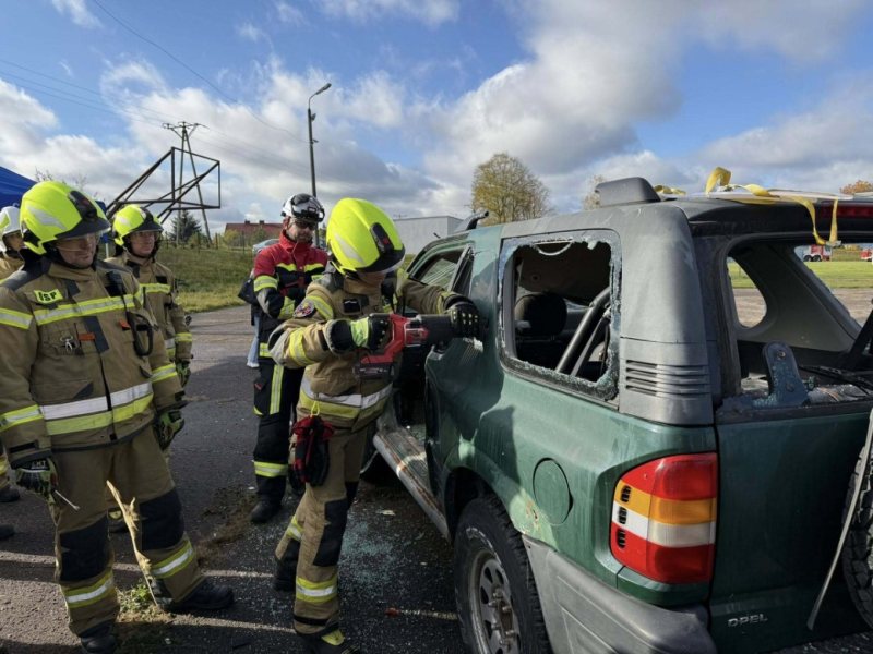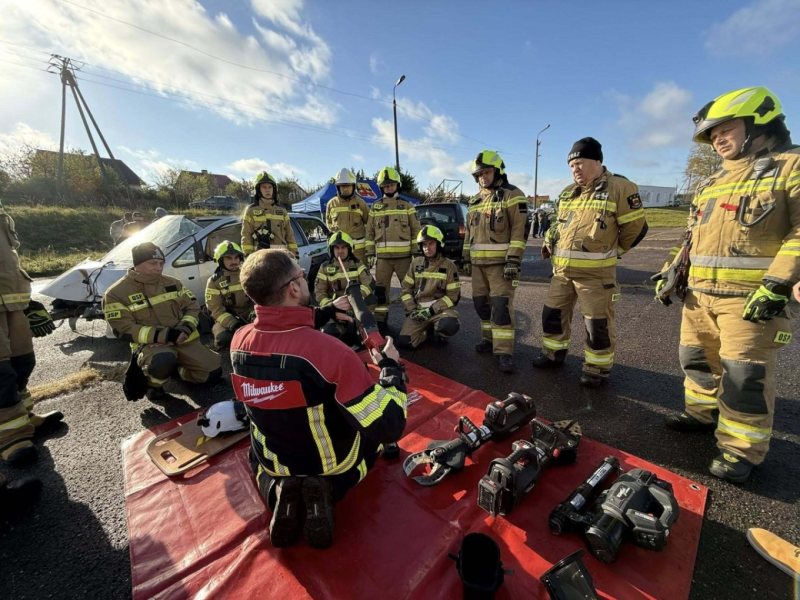 Na placu szkoleniowym stanęło kilka wraków. Strażacy cięli, rozginali i rozrywali karoserie, ucząc się, jak najszybciej dotrzeć do zakleszczonych osób. Ćwiczenia prowadzone były w formie praktycznych pokazów i testów sprzętu marek MILWAUKEE Polska i Weber Rescue – narzędzi, które w prawdziwych akcjach często decydują o życiu. W wydarzeniu wziął udział tez wójt gminy Sławomir Ambroziak.