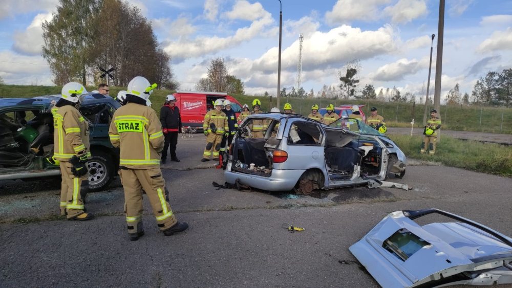 Organizatorzy zadbali o realistyczny przebieg ćwiczeń i różne scenariusze wypadków. Strażacy trenowali m.in. cięcie słupków, zdejmowanie dachów i drzwi pojazdów...
