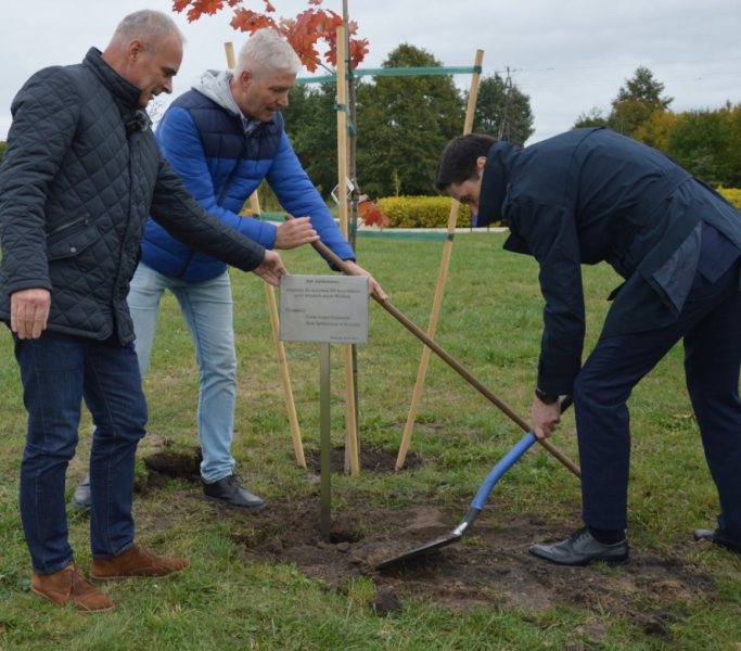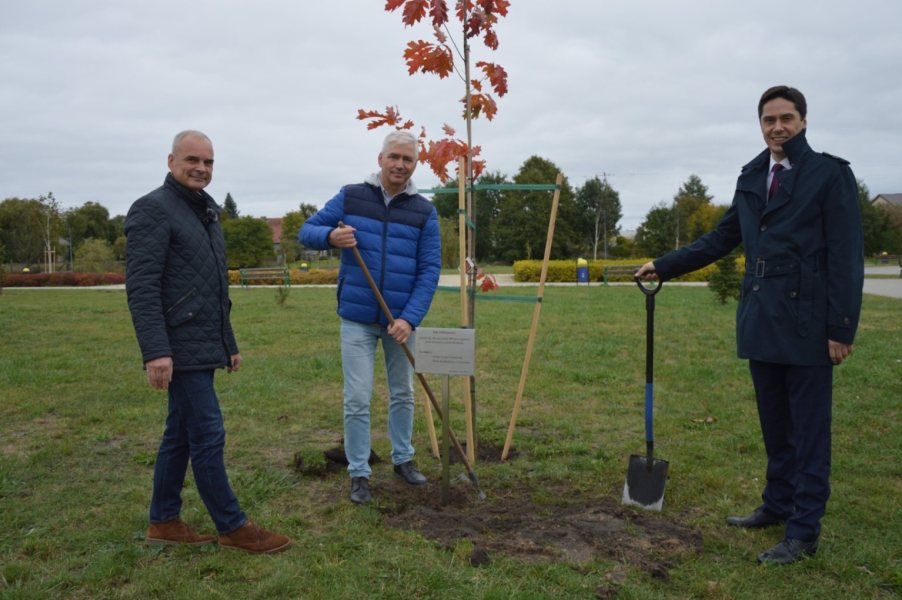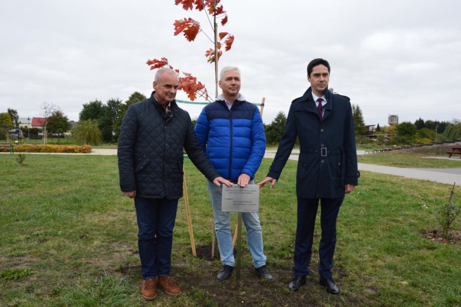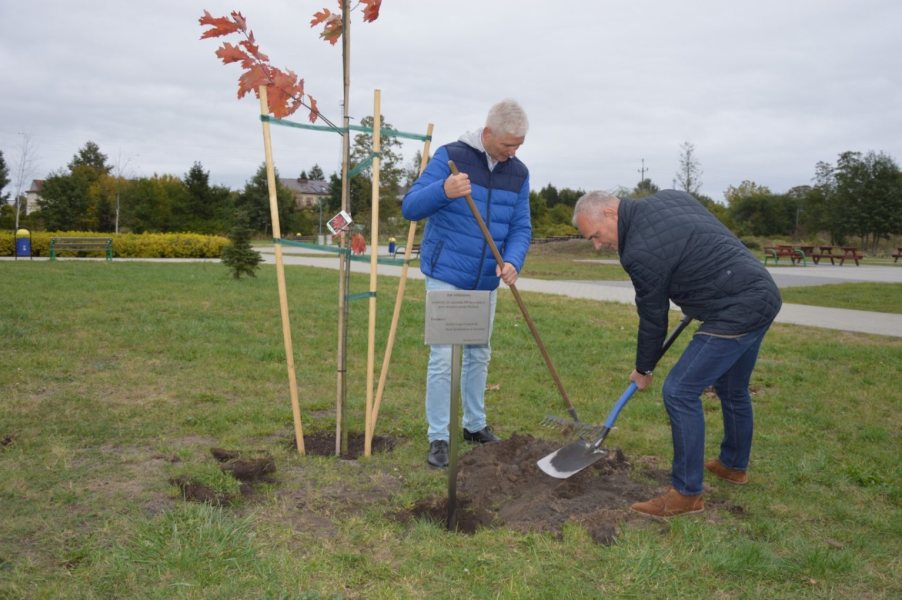 13 października panowie spotkali się, aby wspólnie wkopać też pamiątkową tabliczkę pod dębem. Dąb jest długowieczną rośliną i symbolem pokoleń i mądrości.