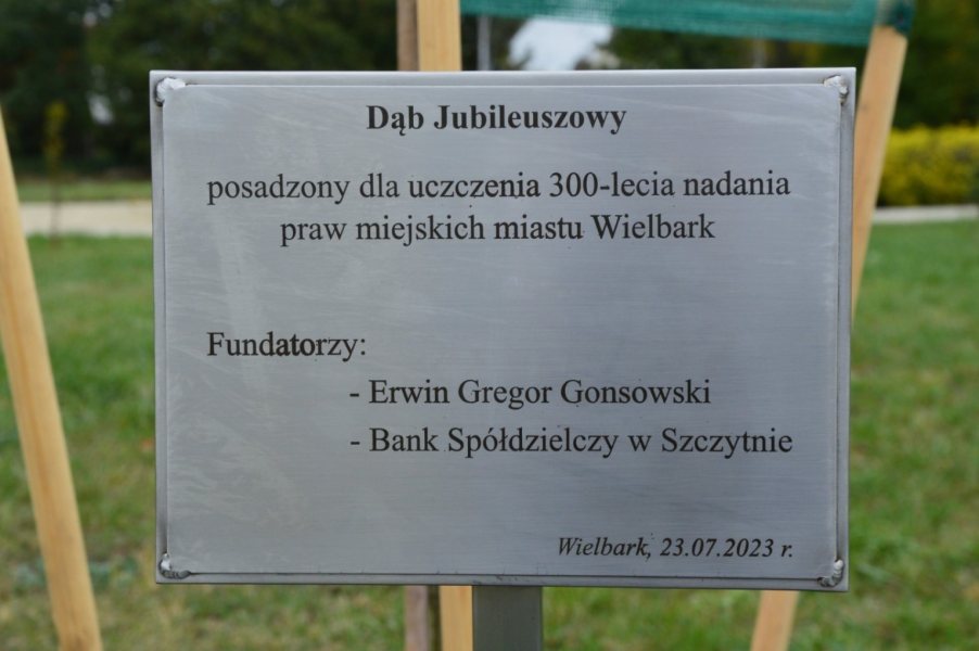 Drzewo zasadzili jeszcze w lipcu, pomysłodawca przedsięwzięcia, Erwin Gregor Gonsowski oraz burmistrz Wielbarka Grzegorz Zapadka i Członek Zarządu Banku Spółdzielczego w Szczytnie Grzegorz Michalecki. Bank Spółdzielczy w Szczytnie był fundatorem przedsięwzięcia.
