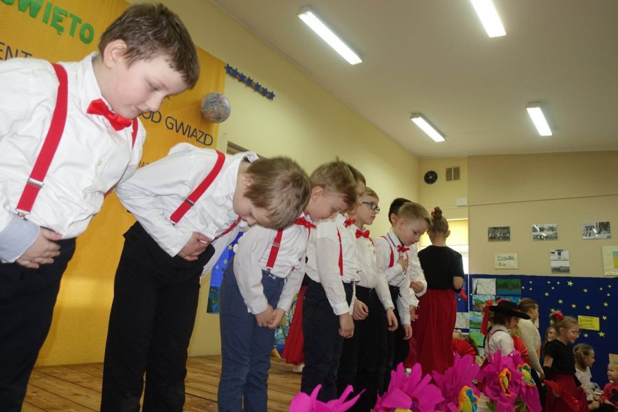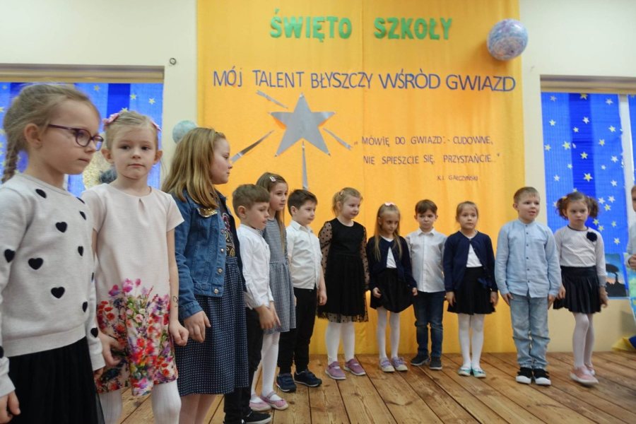 Uroczystości rozpoczęły się od wprowadzenia sztandaru i odśpiewania hymnu. Po prezentacji przybliżającej postać i dorobek twórczy patrona placówki K.I. Gałczyńskiego rozpoczął się przegląd szkolnych talentów, który dostarczył zebranym mnóstwa radości.