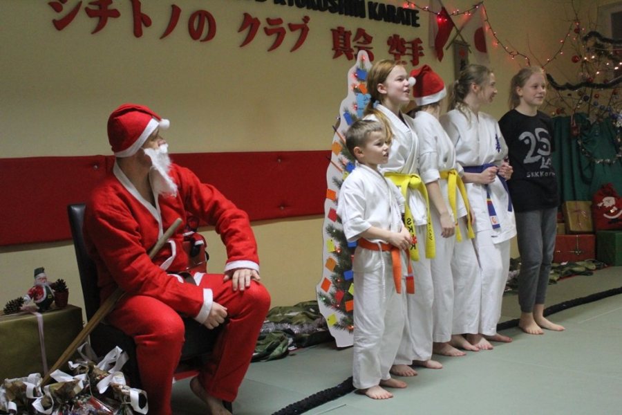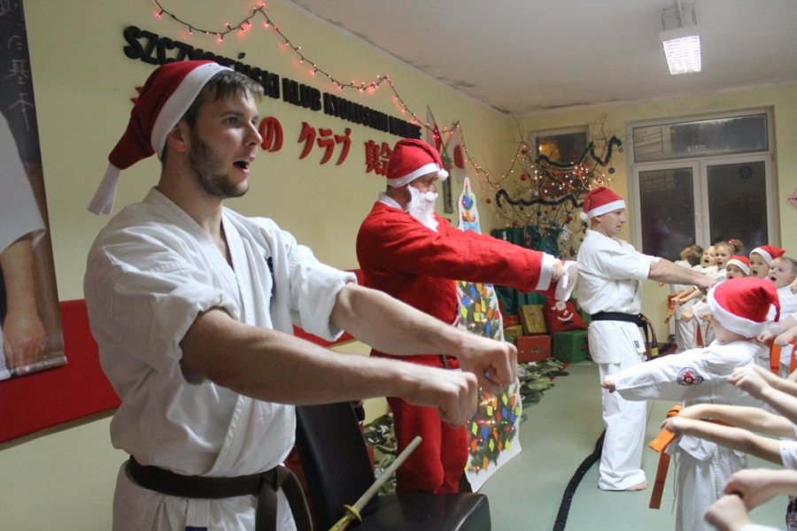 Tradycyjnie ku uciesze dzieci wziął ze sobą mnóstwo podarunków. W tym roku karatecy ze Szczycieńskiego Klubu Kyokushin Karate musieli być bardzo grzeczni, ponieważ w worku Św. Mikołaja nie było ani jednej rózgi tylko same prezenty. Wszyscy obecni na sali, ci duzi i ci mali, najpierw z niecierpliwością wyczekiwali gościa, a gdy ten już się pojawił bardzo się starali zadowolić Św. Mikołaja. - Nasze karate tak bardzo spodobało się przybyszowi z dalekiej krainy, że zanim rozdał swoje paczki to czynnie uczestniczył w treningu – mówi Piotr Zembrzuski. - Później młodzi wojownicy popisywali się swoimi talentami recytatorsko-wokalnymi, swoją sprawnością fizyczną oraz zaprezentowali kata. Mikołaj był pod wielkim wrażeniem, rozdawał swoje podarki karatekom a na koniec obiecał, że z przyjemnością wróci do nas za rok.