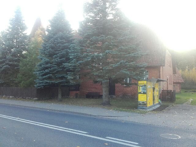 - Stanął tuż obok dwóch najpiękniejszych zabytkowych budynków – mówi. - Kościoła i plebanii. Przetrwały wojnę, są atrakcją Spychowa, a teraz ten żółty kolor blaszaka na paczki razi okrutnie. Psuje zabudowę. Nie rozumiem, jak ktoś mógł się na to zgodzić. Myślę, że ksiądz musiał, bo to z plebanii idą kable na prąd do tego urządzenia.
