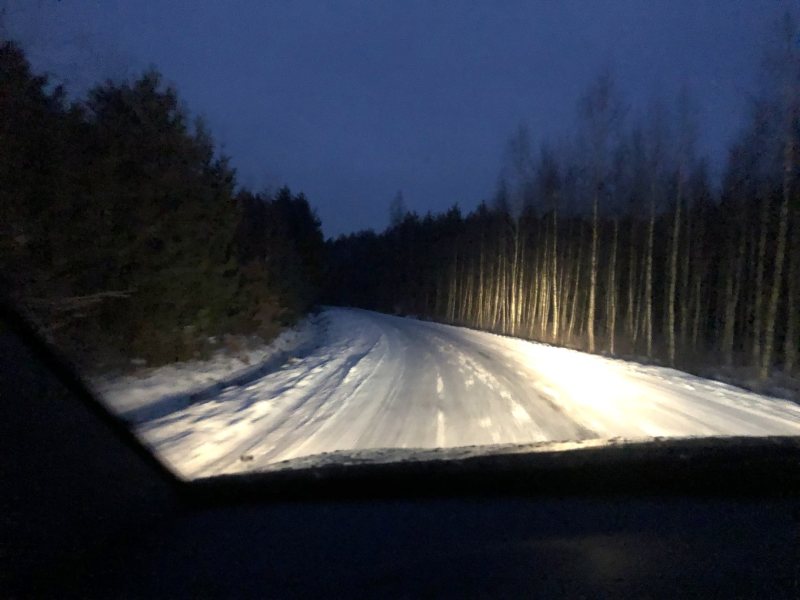 Nawet z Rudki do Szczytna ślisko. Szczególnie zakręt, Nawet koleiny były już widoczne
