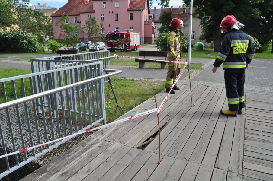 Potrzebny będzie szybki remont drewnianego mostku znajdującego się nad kanałem łączącym dwa miejskie jeziora w Szczytnie. Dziś interweniowali tam strażacy. Zarwała się deska pod spacerowiczem. Na szczęście nic mu się nie stało.