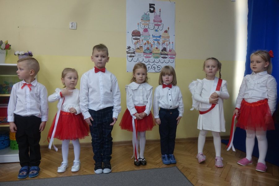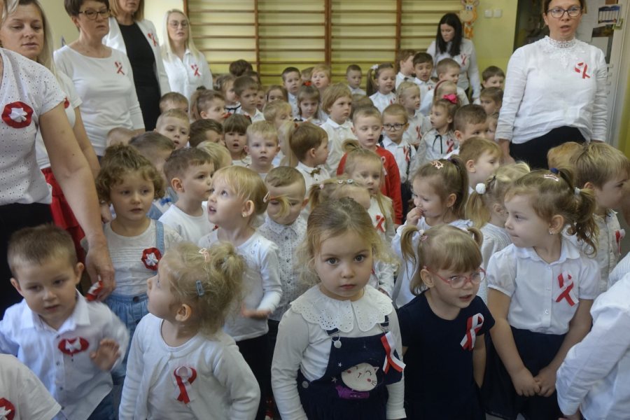 W drugiej części uroczystości, przedszkolaki wzięły udział w obchodach 105. rocznicy odzyskania przez Polskę niepodległości. Dzieci uczestniczyły w patriotycznych zabawach, śpiewały pieśni narodowe i wysłuchały krótkiej lekcji historii, przystosowanej do ich wieku. Wszystko to miało na celu kształtowanie szacunku do symboli narodowych oraz pielęgnowanie patriotycznych wartości.