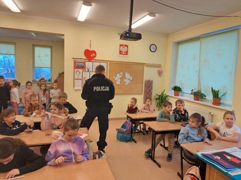 Policjanci rozmawiali z uczniami młodszych klas na temat bezpieczeństwa na drodze w ramach akcji „Oklaski za odblaski”. Mundurowi przypomnieli podstawowe zasady bezpiecznego uczestnictwa w ruchu drogowym. Pokazali także, w jaki sposób działają odblaski i wyjaśnili, dlaczego są tak istotne. Uczniowie wysłuchali również opowieści o Poli, które są przestrogą i wskazówką dla najmłodszych.