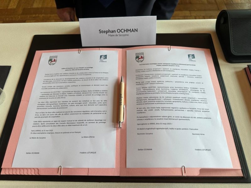 31 maja 2025 roku w Szczytnie podpisano dokument, który może zapoczątkować zupełnie nowy etap w międzynarodowych relacjach miasta. Burmistrz Szczytna Stefan Ochman i burmistrz francuskiego Arras Frédéric Leturque złożyli podpisy pod listem intencyjnym o współpracy partnerskiej.