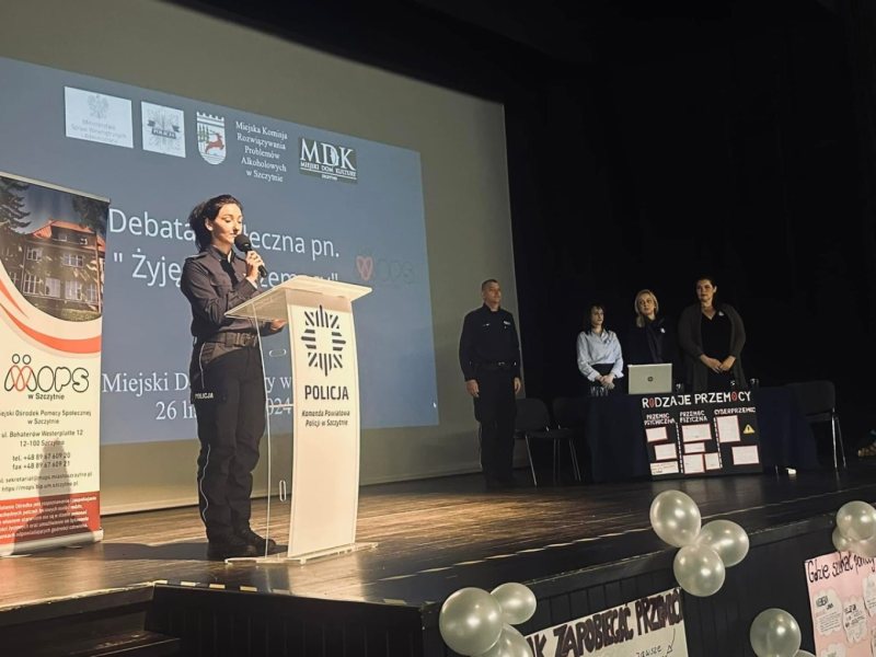 Potem głos zabrali przedstawiciele instytucji zaangażowanych w przeciwdziałanie przemocy. Podinsp. Paweł Przybyłek, I Zastępca Komendanta Powiatowego Policji w Szczytnie, oraz Hanna Bojarska, Dyrektor Miejskiego Ośrodka Pomocy Społecznej, wprowadzili uczestników w tematykę debaty, podkreślając wagę edukacji i współpracy w walce z przemocą.