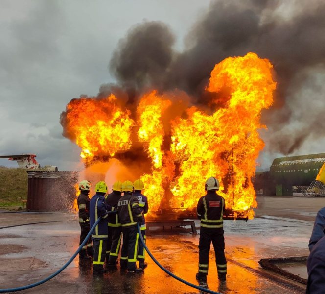 Nad bezpieczeństwem wszystkich osób korzystających z Lotniska Olsztyn Mazury (w Szymanach) każdego dnia czuwają strażacy Lotniskowej Służby Ratowniczo-Gaśniczej. Część z nich przebywa właśnie w brytyjskim The International Fire Training Centre, gdzie pod okiem wykwalifikowanej kadry instruktorskiej przechodzą okresowe szkolenie.