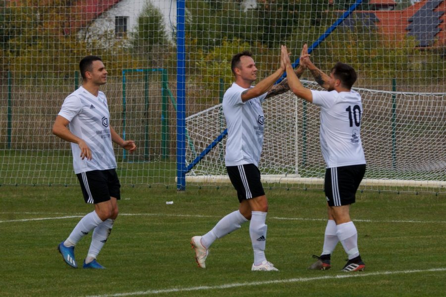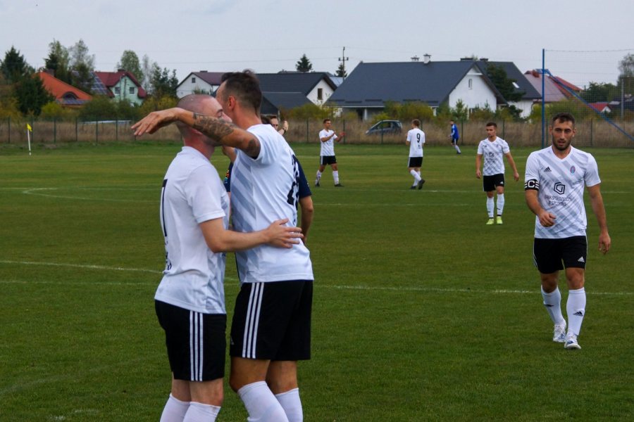 Sędzia, niestety, w tej sytuacji dopatrzył się spalonego. Wątpliwości przy bramce nie było już cztery minuty później. Jakub Kulesik wychodził sam na sam z bramkarzem, ale został nieprzepisowo powstrzymany przez rywala i arbiter podyktował rzut wolny. Do piłki oddalonej około 20 metrów od bramki podszedł Marcin Łukaszewski i silnym strzałem pokonał po raz drugi bramkarza. Do przerwy wynik nie uległ już zmianie i do szatni pasymianie zeszli z dwubramkowym prowadzeniem.