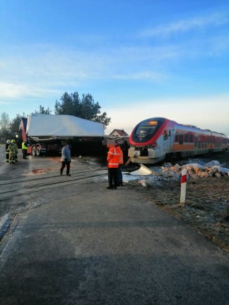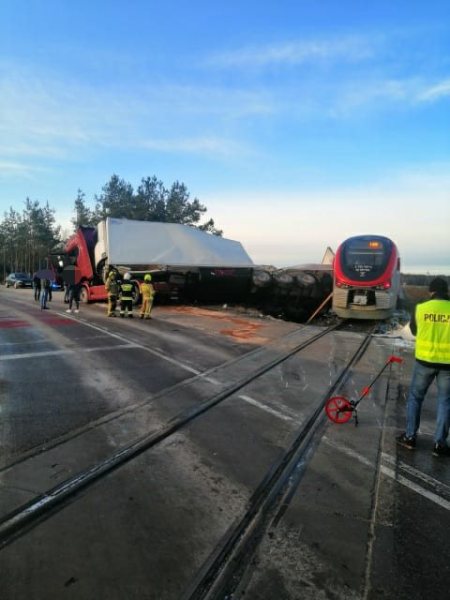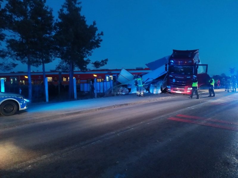 Ciężarówka zderzyła się z szymobusem relacji Ełk - Olsztyn. Szynobusem podróżowało 19 osób oraz dwóch pracowników kolei. Na szczęście nikt nie doznał poważniejszych obrażeń.