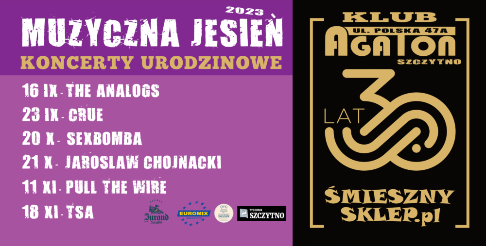 Pełną parą ruszają przygotowania do niezwykłego muzycznego wydarzenia w Szczytnie – Muzyczna Jesień z okazji 30 lat działalności firmy Agaton. To seria koncertów z niezwykłymi muzycznymi gwiazdami. Już zaplanowanych jest sześć wydarzeń, a to nie koniec.