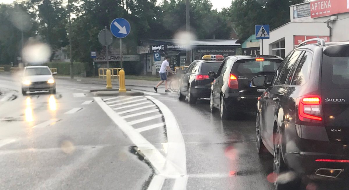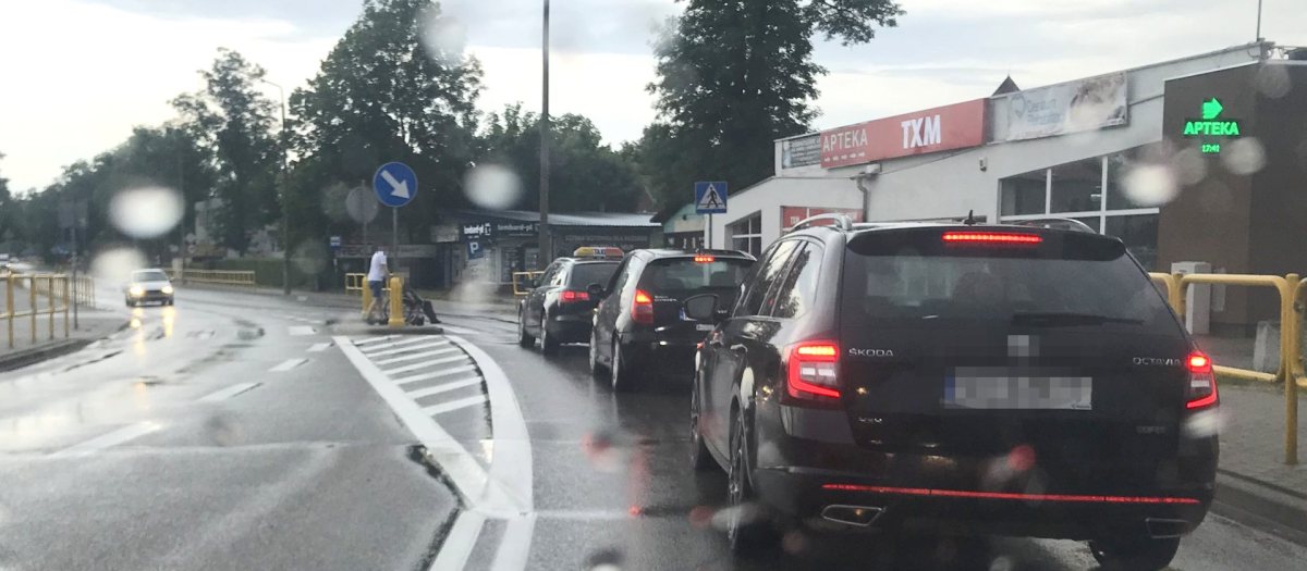 Młody kierowca taksówki widząc, że niepełnosprawna kobieta na wózku ma problem z pokonaniem przejścia dla pieszych w pobliżu dawnego Polmozbytu zatrzymał swoje auto, ruch na drodze, wyszedł z samochodu i pomógł kobiecie.
