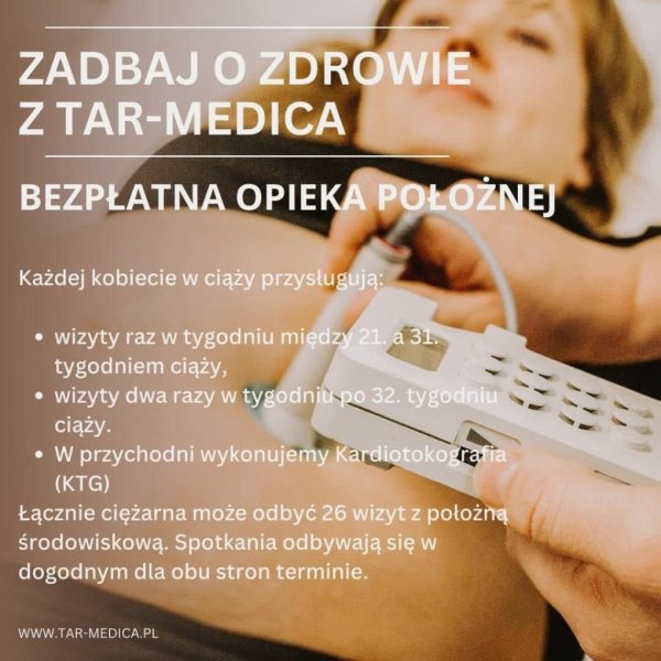 Profesjonalny zespół położnych w Tar-Medica służy pomocą od 21. tygodnia ciąży aż do zakończenia okresu połogu. Ich celem jest zapewnienie indywidualnego podejścia, udzielenie fachowych porad oraz wsparcie w przygotowaniu do porodu i pierwszych tygodni macierzyństwa.