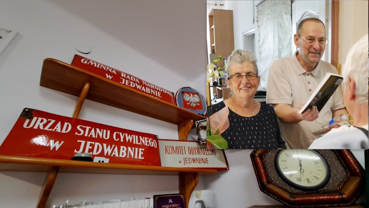 Dziś te przedmioty zajmują trzy połączone pomieszczenia w starym budynku Urzędu Gminy. Pierwsza sala to pamięć o Jedwabnie i jego mieszkańcach. Albumy z wycinkami prasowymi, które Budny porządkuje od połowy lat 70., dokumenty, pamiątki. Jest też tablica poświęcona Walentemu Habandtowi, odnaleziona w schowku starostwa.