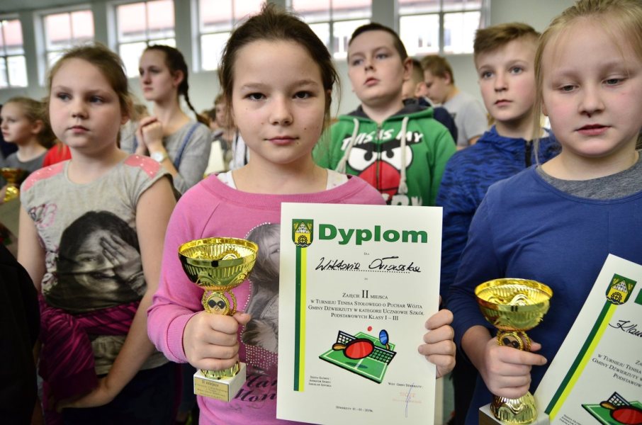 Aż 127 uczniów z gminy Dźwierzuty wzięło udział w Turniej Tenisa Stołowego o Puchar Wójta Gminy Dźwierzuty. W najstarszej kategorii wiekowej wygrali Wiktoria Niemyjska i Norbert Knizia, a w najmłodszej Klaudia Darmofał i Artur Łomiak.