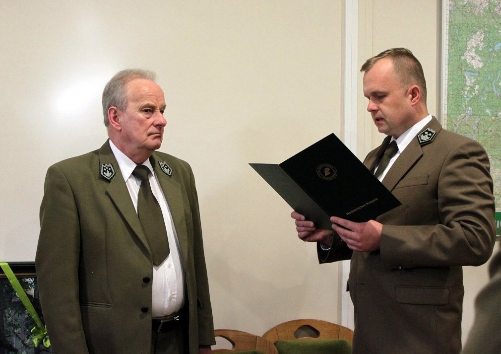 Adam Roczniak (z lewej), Dyrektor Regionalnej Dyrekcji Lasów Państwowych w Olsztynie powołał na stanowisko nadleśniczego Nadleśnictwa Korpele Tomasza Flisa.