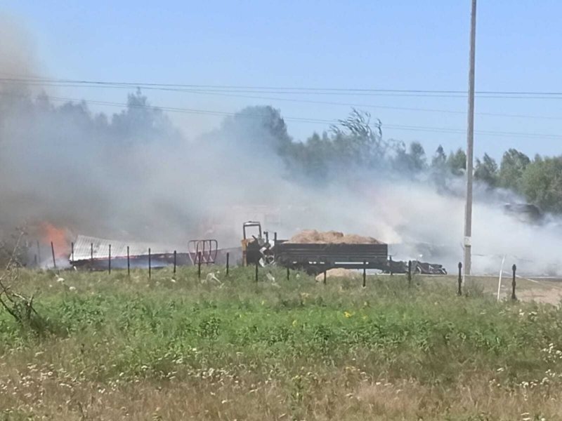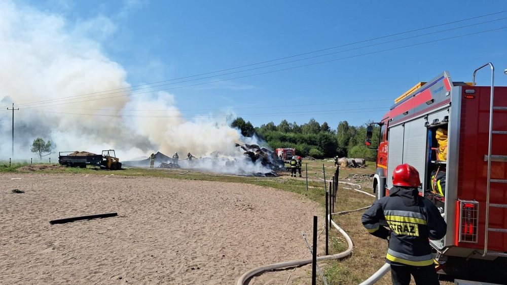 Trwa akcja gaśnicza w Nowym Gizewie. W ogniu stanęło 120 balotów słomy oraz drewniany budynek gospodarczy. Szopa spłonęła doszczętnie. Niestety wraz z nią życie straciły dwa kozły znajdujące się wewnątrz budynku.