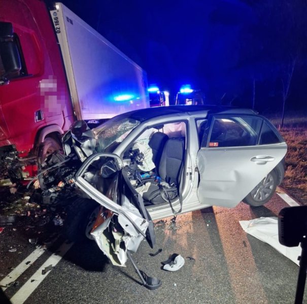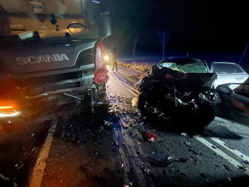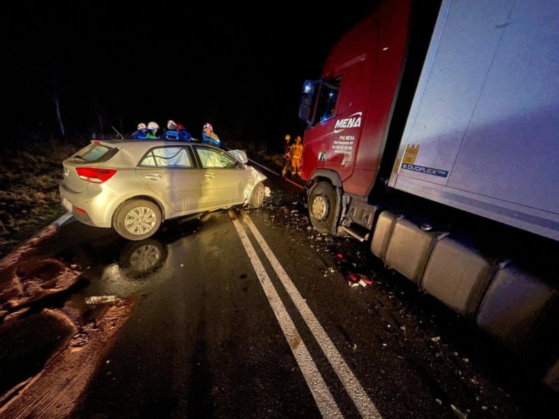 Przed godziną 23:00 na drodze krajowej numer 53 w pobliżu miejscowości Tylkowo, doszło do zdarzenia drogowego z udziałem samochodu osobowego marki Kia oraz pojazdu ciężarowego marki Scania z naczepą.