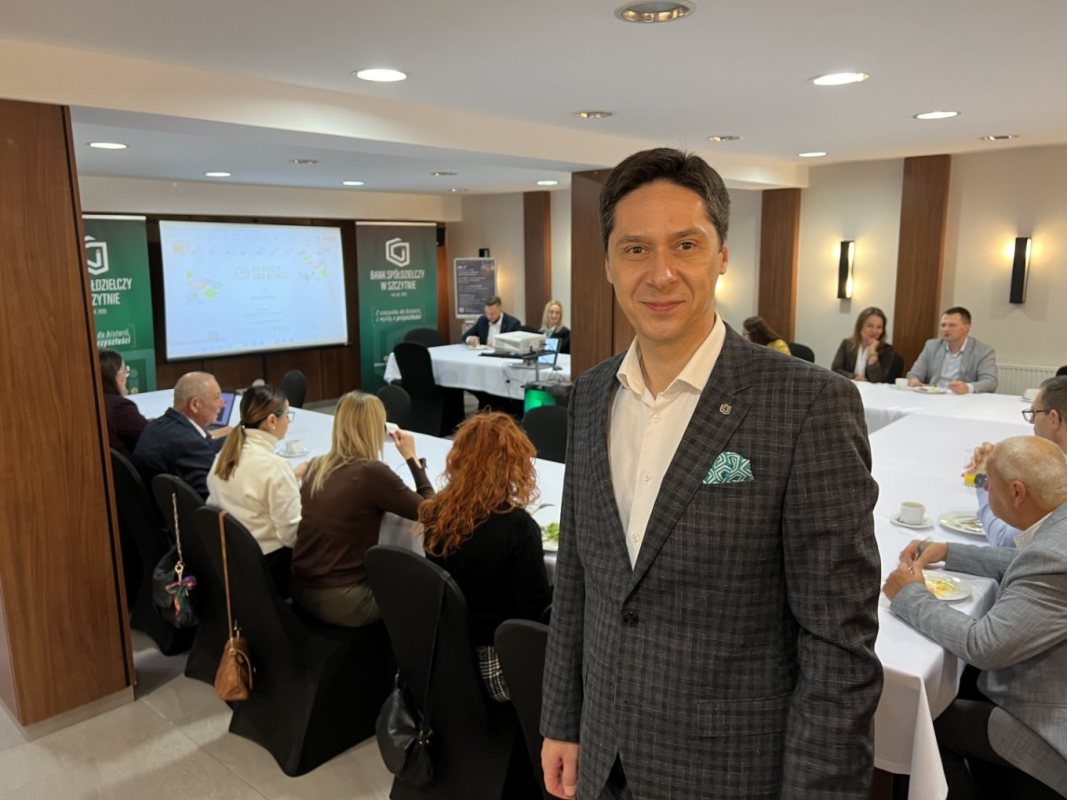 W Hotelu Krystyna w Szczytnie trwa kolejne spotkanie z cyklu „Pierwsza Liga Biznesu”, organizowanego przez Bank Spółdzielczy w Szczytnie. Tym razem uczestnicy rozmawiają o relacjach w pracy i w biznesie – tematem przewodnim jest „Komunikacja szef – pracownik – klient”.