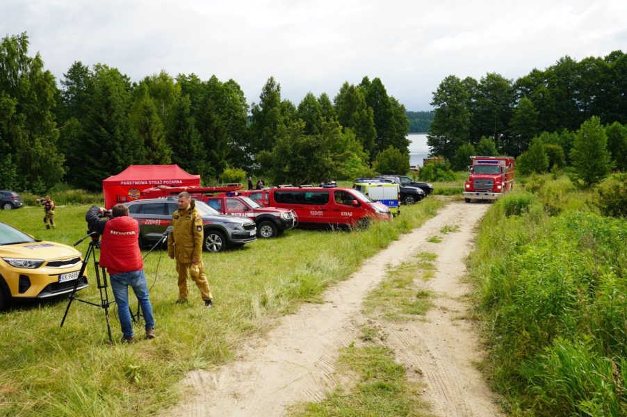 Podczas działań odnaleziono dwa puste kajaki i wiosła. Na miejscu działają strażacy oraz policjanci w tym specjalistyczna grupa wodno-nurkowa PSP z sonarem oraz policjanci z psem tropiącym i dronem. Do akcji dołączyły także służby leśne, straż rybacka czy Mazurskie Ochotnicze Pogotowie Ratunkowe. W sumie to ponad 50 osób.