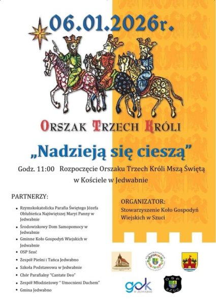 Orszak Trzech Króli to inicjatywa, która co roku gromadzi mieszkańców miast, miasteczek i wsi. W Jedwabnie wydarzenie ma charakter wspólnotowy i otwarty. Do udziału zaproszeni są mieszkańcy w każdym wieku – rodziny, dzieci, młodzież i seniorzy. Uczestnicy przejdą trasą orszaku, symbolicznie podążając śladem Mędrców ze Wschodu.