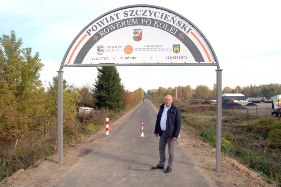 To prawda. Jak dziś pamiętam swoją przejażdżkę po okolicznych lasach i przejazd po fragmencie tego starego nasypu, z którego zaczęto już zdejmować tory. Stanąłem na nim i zobaczyłem praktycznie gotową trasę rowerową. To było jak objawienie. I zaraz na drugi dzień, już w pracy, uruchomiłem pierwsze działania. To teren kolejowy, trzeba więc było najpierw uzyskać własność, zaprosić inne samorządy do współpracy, rozpocząć przygotowania do inwestycji i ciągle, ciągle pilnować. Bo na przykład firma rozbierająca stare torowisko na zlecenie kolei zaczęła też likwidować nasyp, niszcząc to, co stanowiło podstawę przyszłej trasy dla rowerów. Później trzeba było szukać pieniędzy, jeszcze później – wykonawcy... Nic to – jak powiadał imć Wołodyjowski. Ważne, że to wszystko się udało, przynajmniej na tym pierwszym fragmencie trasy, bo w drugim etapie będzie przygotowany odcinek do Dźwierzut, a docelowy plan mówi o tym, że można będzie dojechać do Biskupca.
