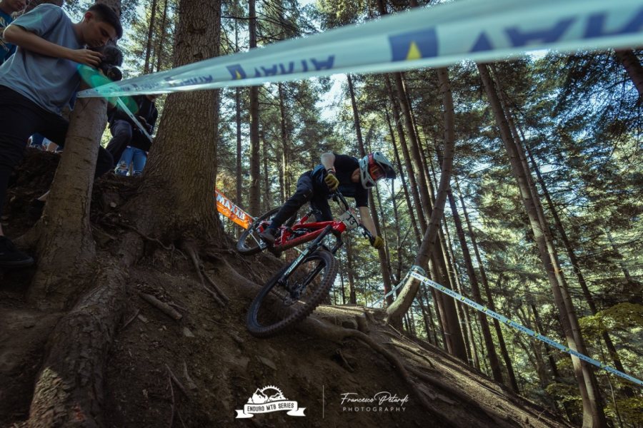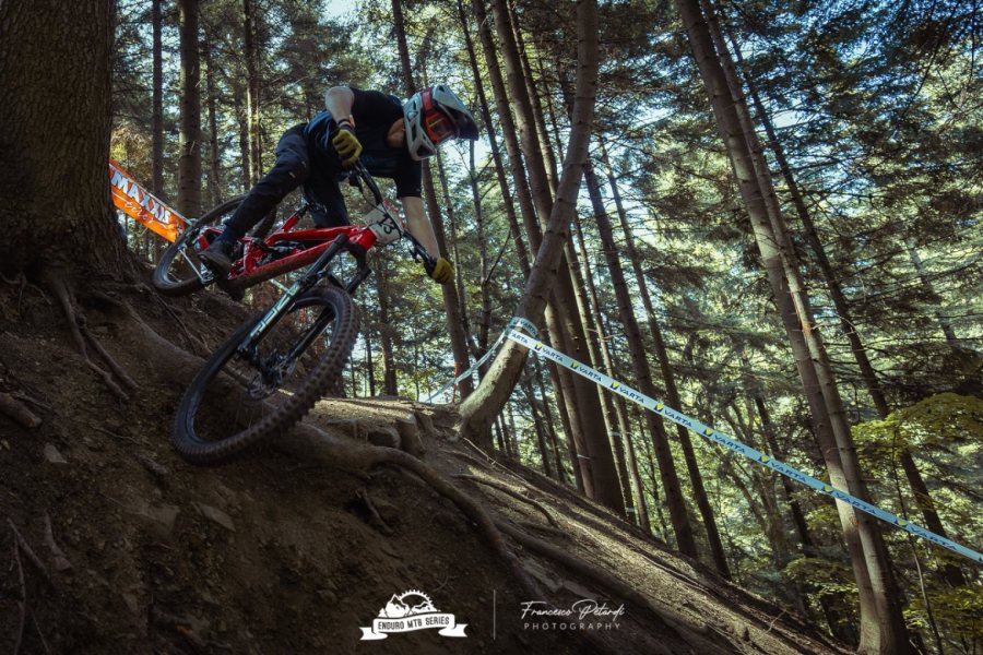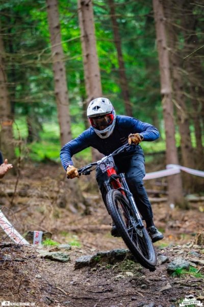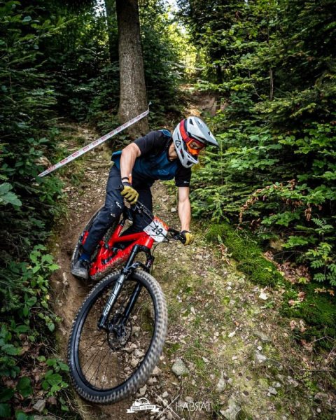 - Zawody enduro polegają na tym, że rowerem wjeżdża się na szczyt jakiejś góry łagodnym stokiem, a następnie zjeżdża się z niej inną trasą, często stromą ścieżką, wąską, z różnymi „przeszkodami”. Te trasy zwykle biegną przez las, który takich przeszkód też nie skąpi – opowiada Tymon. - Podczas jednych zawodów są trzy – cztery takie zjazdy. Czasem są to różne trasy wiodące z jednego szczytu, czasem tych szczytów jest więcej. Dla wyników rywalizacji liczone są tylko czasy zjazdów.