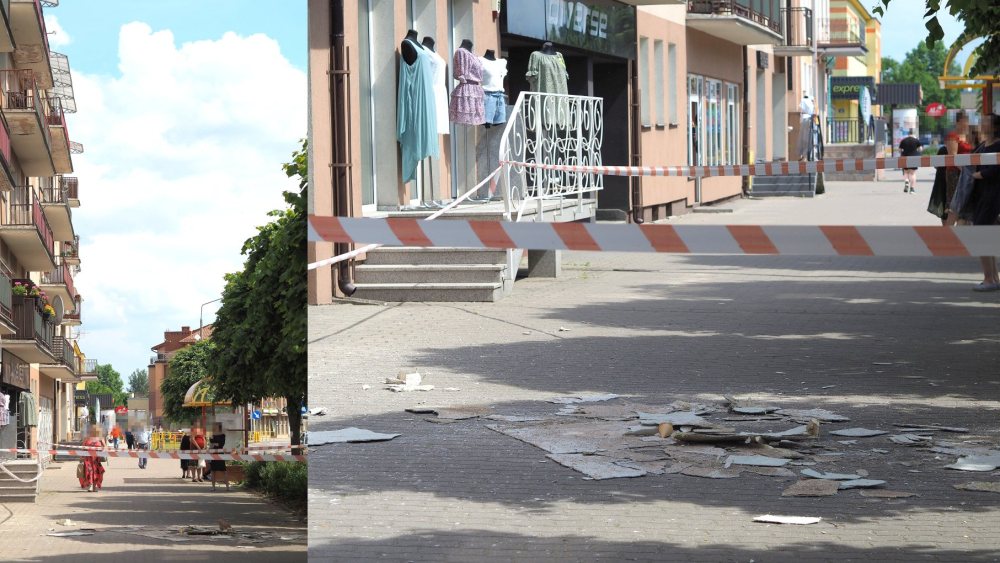 Do incydentu doszło we wtorek, 8 czerwca około godziny 14. Chodnikiem przy ulicy Polskiej, mniej więcej na wysokości Zespołu Szkół nr 2 w Szczytnie szła 37-letnia kobieta szła z 8-miesięcznym dzieckiem w wózku. W pewnym momencie od balkonu oderwał się kawał gzymsu. Runął na chodnik.