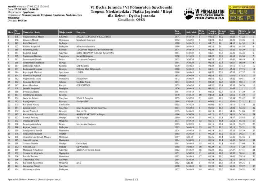 12 233 Staszewski Jakub Spychowo OSP Spychowo 1998 Open M 9 05:53 10.2 30:37 30:40 9