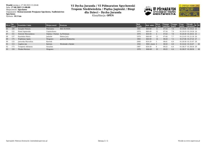 5 - 64 Dzięgielewski Rafał Wyszków 1979 M40-49 3 04:27 13.5 46:04 01:33:23 01:33:25 5