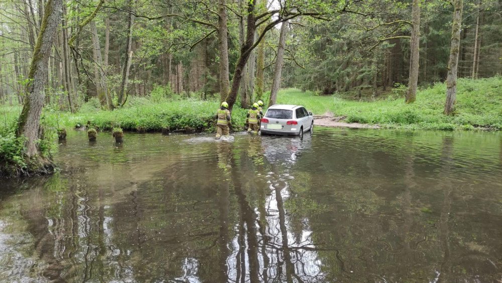 Przy pomocy wyciągarki samochodowej strażacy wyciągnęli auto z wody. Na miejscu pojawili się strażnicy leśni oraz policjanci, którzy wyjaśniają, co dokładnie wydarzyło się w tym miejscu. Policjanci szukają właściciela samochodu, być może on rzuci na tą sytuację nieco więcej światła.