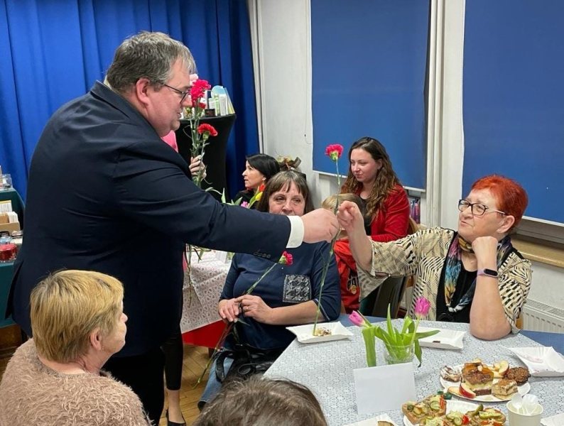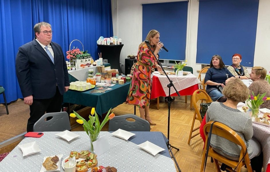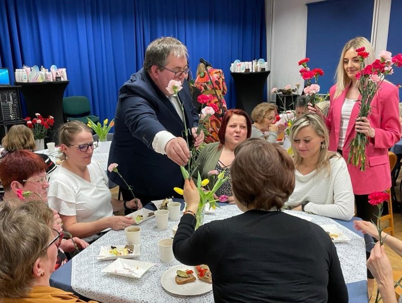 Po części muzycznej, wszystkie zgromadzone przeniosły się do sali tanecznej, gdzie przy kawie i ciastku podjęły się kobiecych rozmów. W tle tego przyjemnego spotkania, Sylwia Jaskulska, Marszałek Województwa Warmińsko-Mazurskiego oraz Sławomir Ambroziak, Wójt Gminy Jedwabno, złożyli najlepsze życzenia i wręczyli każdej z obecnych pań symboliczny kwiat.