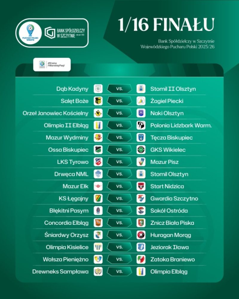 W pucharowej rywalizacji pozostała już tylko drużyna Błękitnych Pasym, która swój mecz rozegra we wtorek, 7 października, o godzinie 18:00 na stadionie miejskim w Ostródzie. Pierwotny termin spotkania musiał ulec zmianie ze względu na priorytetowe rozgrywki ligowe pasymian.