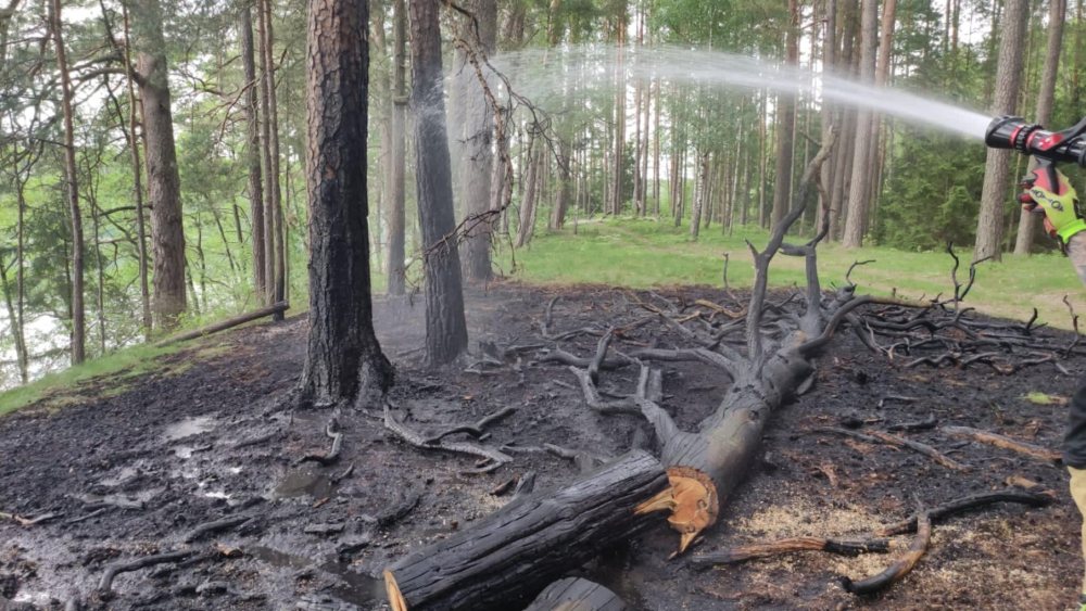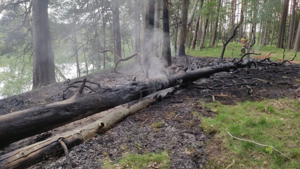 Aż cztery zastępy straży pożarnych walczyło z pożarem lasu w okolicy wsi Dłużek w gminie Jedwabno. Ogień, po godnie 13, zauważył turysta. Najpierw sam zaczął gasić pożar, gdy nie dał rady wezwał służby.