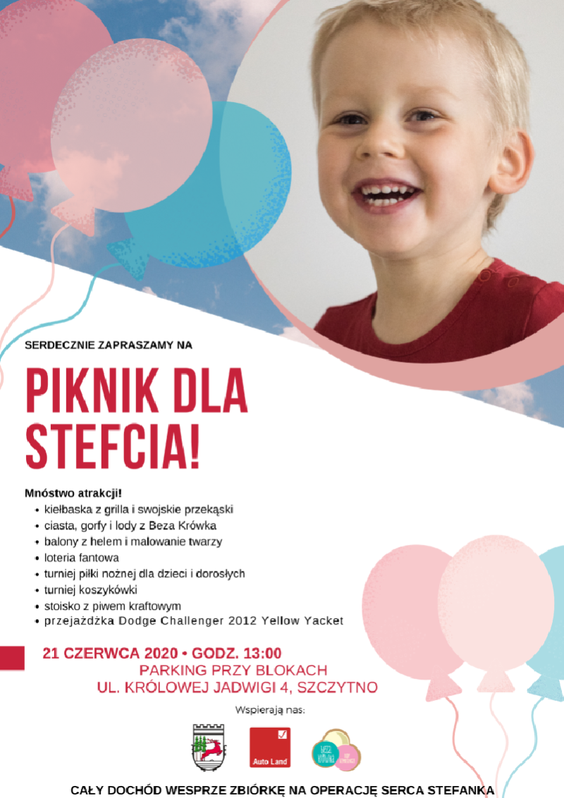 W niedzielę, 21 czerwca, o godz. 13 na osiedlu przy ul. Królowej Jadwigi w Szczytnie odbędzie się Piknik dla Stefcia. Chłopiec musi być pilnie poddany kosztownej operacji. Potrzebna jest pomoc ekonomiczna. Trwają zbiórki pieniędzy na ten cel.