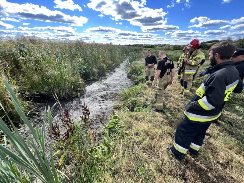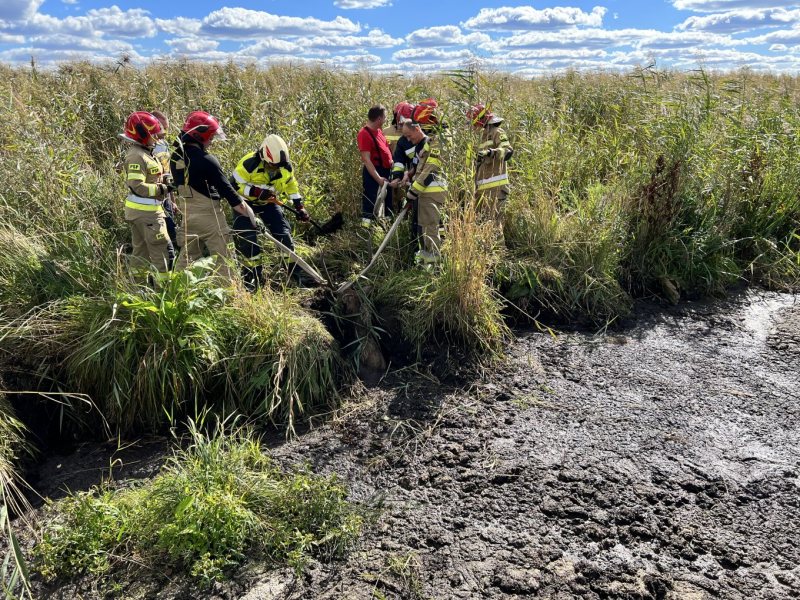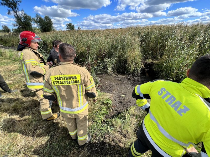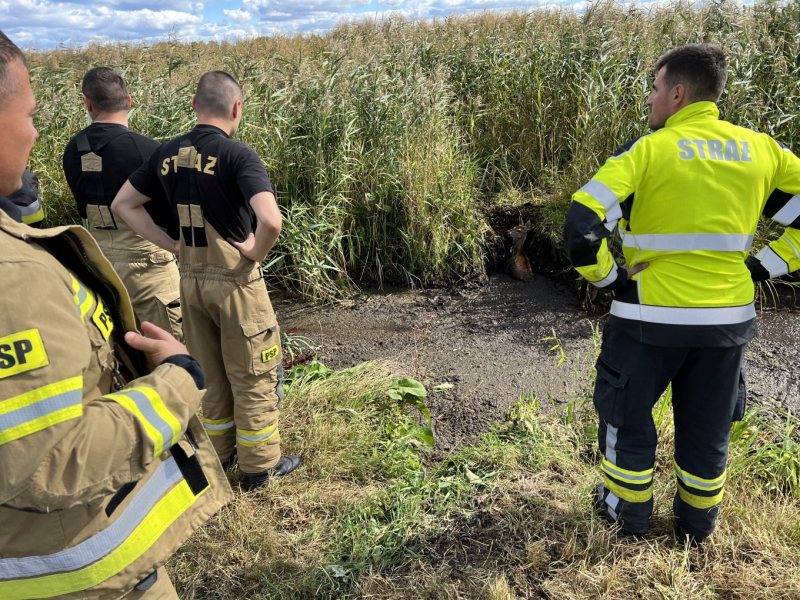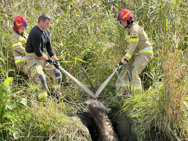 Rolnik powiadomił myśliwych, a ci o pomoc w uwolnieniu zwierząt poprosili strażaków.